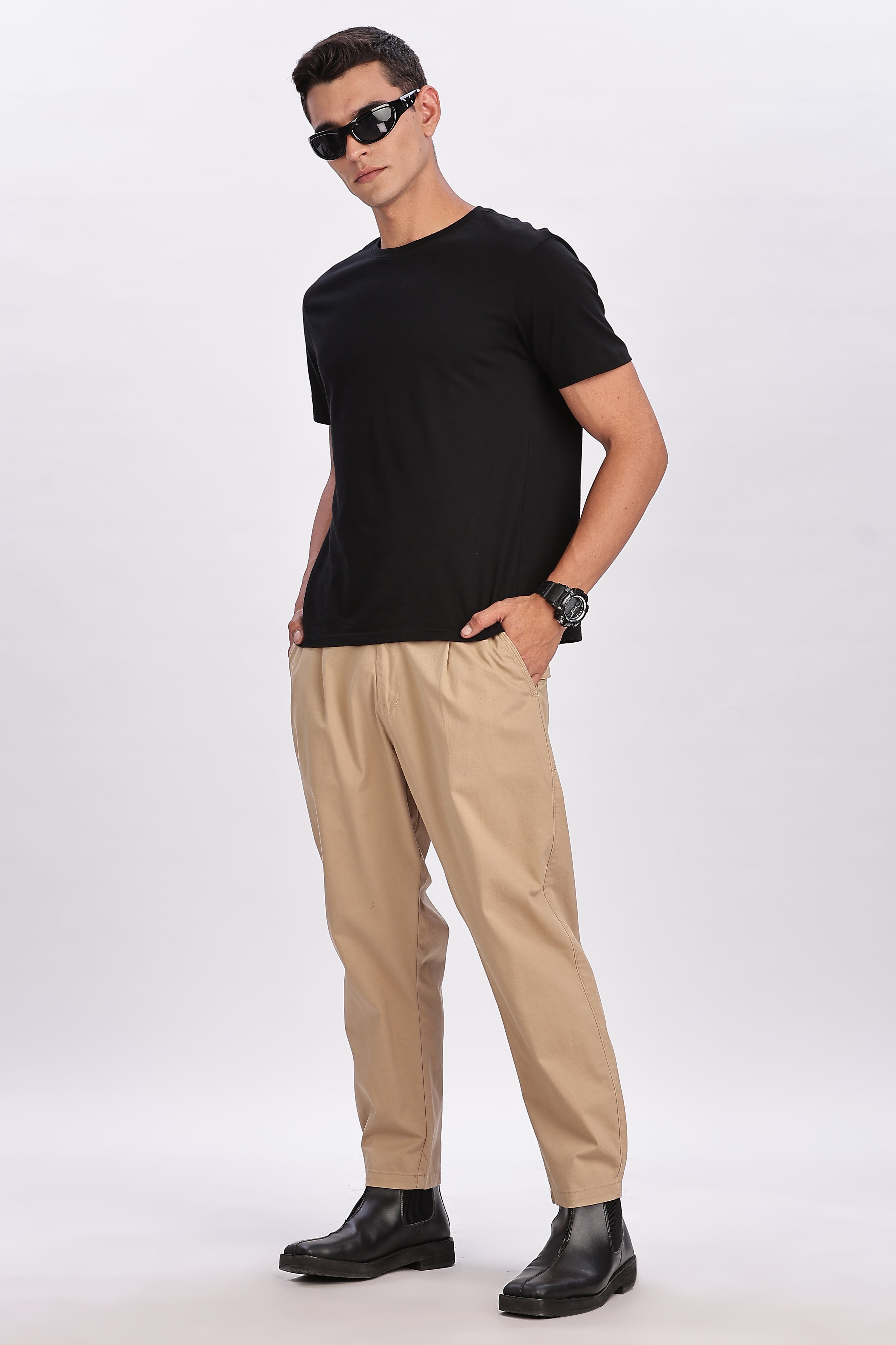 Details: Introducing the Color Hunt Men's Beige Ankle Length Cotton Jogger Trousers, designed to redefine comfort and style in your wardrobe. Made from 100% high-quality cotton, these joggers are as breathable as they are durable, ensuring you stay comfortable throughout your day. The solid beige color provides a versatile base that pairs effortlessly with various tops, making it a staple piece for any fashion-forward individual. The joggers feature a buttoned opening, adding a touch of sophistication to the casual jogger style. Their regular fit design strikes the perfect balance between relaxed and tailored, allowing for maximum movement without compromising on style. The ankle-length cut further enhances their versatility, suitable for both casual outings and semi-formal events. Whether you're heading out for a day of errands, lounging at home, or meeting friends for a casual dinner, these jogger trousers are your go-to choice. Elevate your wardrobe with these essential joggers from Color Hunt and experience the perfect blend of comfort and style.