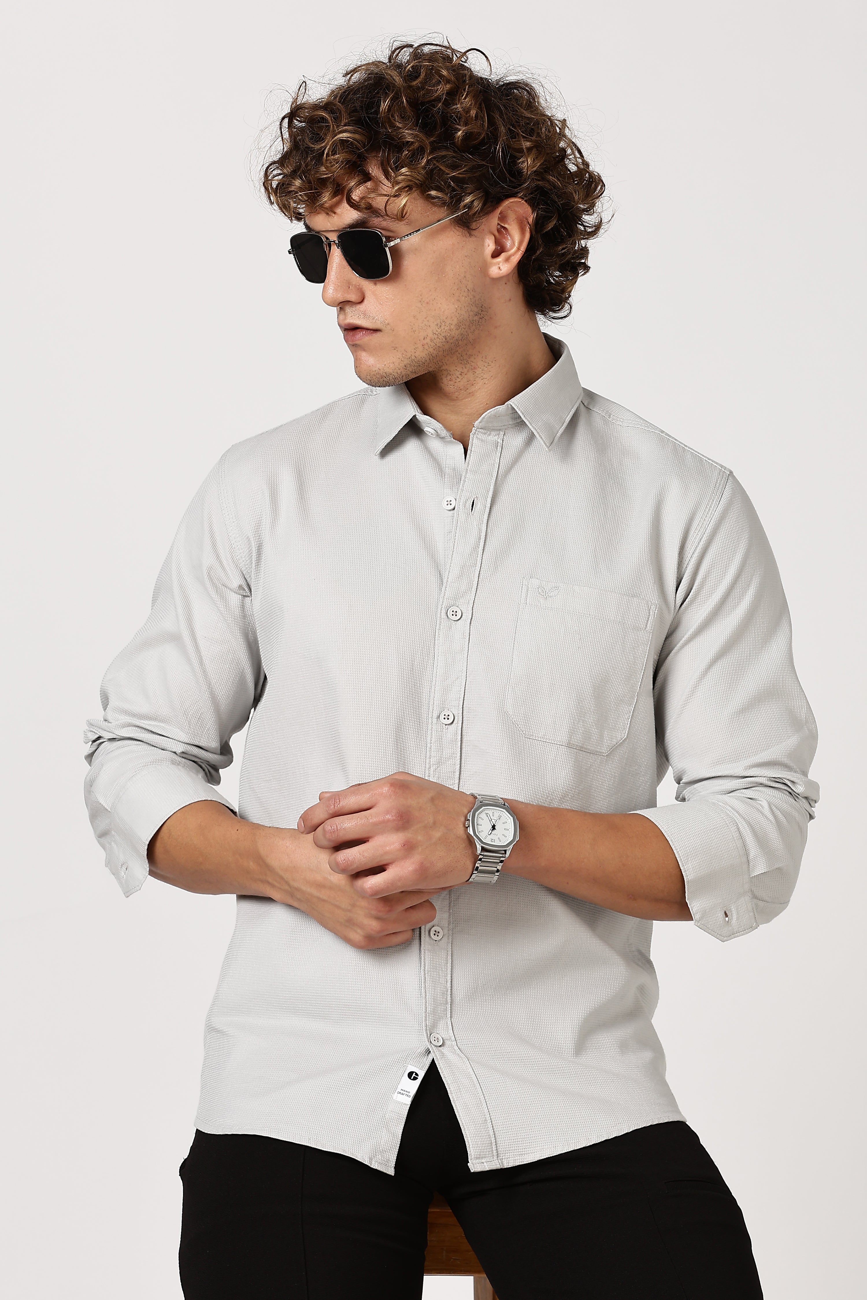 Details: Step up your fashion game with the Color Hunt Men's Light Grey Full Sleeve Cotton Shirt. This expertly crafted garment is made from high-quality 100% Cotton, ensuring you stay comfortable and stylish throughout the day. The solid light grey color offers a versatile and sophisticated appearance that complements any wardrobe, making it a staple piece for all seasons. With a Regular Fit, this shirt provides a relaxed yet tailored look that suits all body types. The full sleeves add a touch of elegance, while the button opening ensures a practical and easy-to-wear design. Whether you're attending a business meeting, enjoying a weekend brunch, or heading out for a night on the town, this shirt is your go-to choice for a polished and refined ensemble. Pair it with jeans for a casual look or dress it up with slacks for a more formal occasion. Invest in the Color Hunt Men's Light Grey Full Sleeve Cotton Shirt and experience the perfect blend of comfort, style, and versatility.
