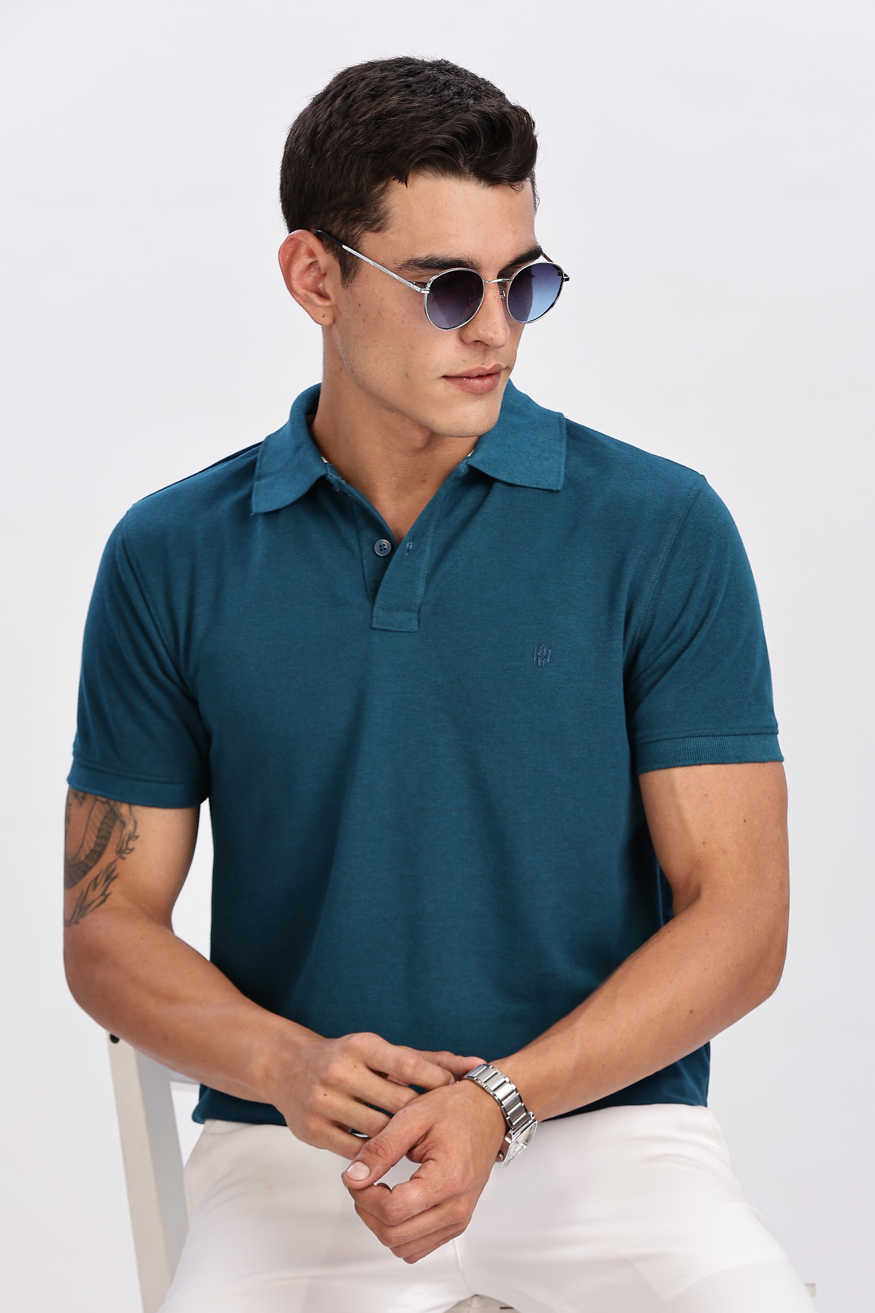 Details: Elevate your everyday style with the Color Hunt Men's Rama Half Sleeve Polo T-shirt. This versatile piece is designed to offer a blend of comfort and sophistication, perfect for both casual outings and semi-formal gatherings. Made from high-quality Matty Cotton, this T-shirt ensures maximum breathability and a soft touch against your skin, making it an ideal choice for warm weather. The striking Rama color adds a unique flair to your wardrobe, while the solid print offers endless styling possibilities. The classic polo design is enhanced with a button opening and a regular fit, providing a flattering silhouette that suits all body types. Whether you're heading to a weekend brunch or a casual office day, this Color Hunt Polo T-shirt is your go-to option for effortless style.