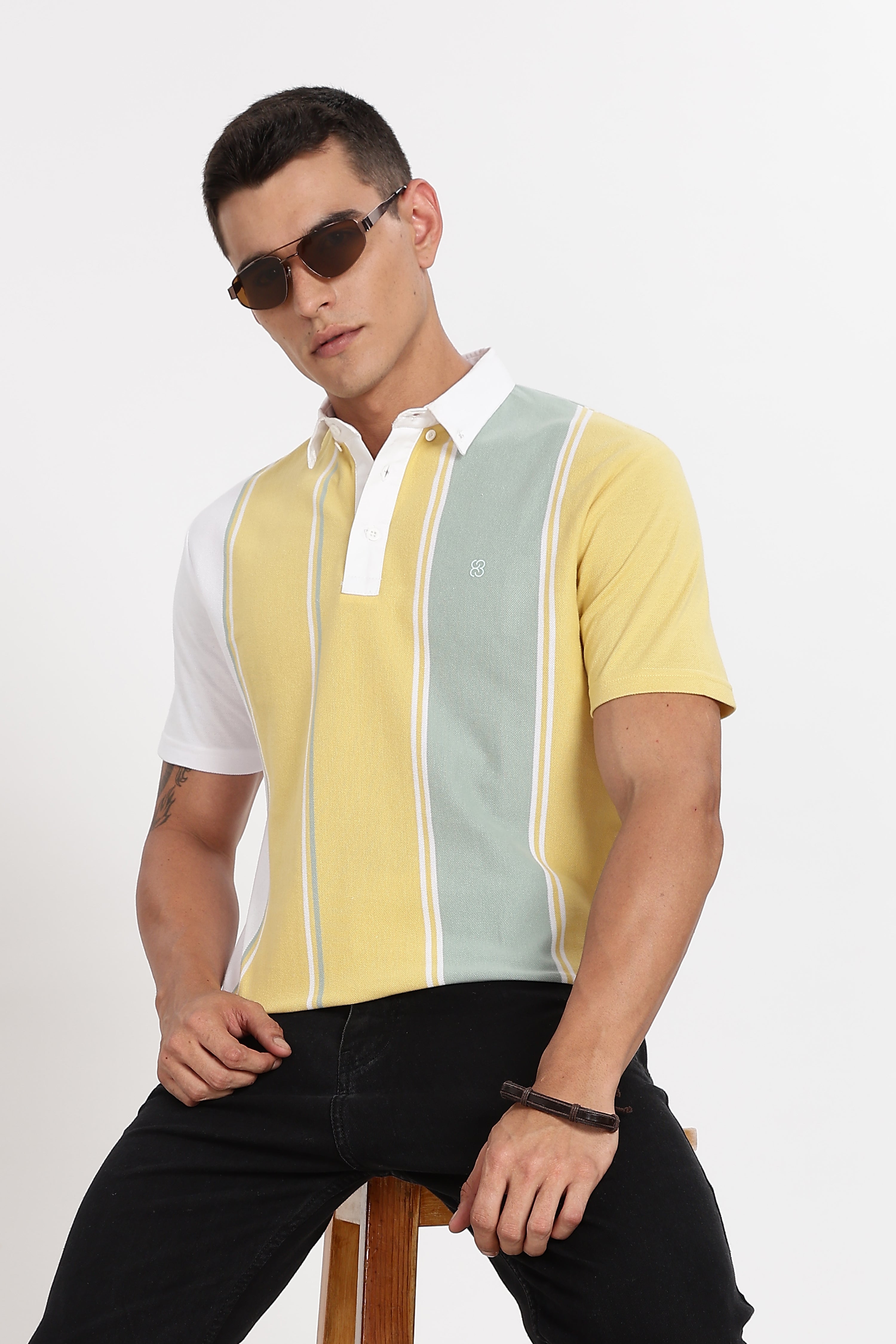 Details: Introducing the Color Hunt Men's Yellow Striped Slim Fit Polo T-Shirt, a staple piece for any fashion-forward wardrobe. This polo T-shirt is crafted from a premium poly cotton blend, ensuring a soft touch against the skin while offering excellent durability for everyday wear. The striking yellow striped pattern adds a pop of color, making it a standout choice for any casual or smart-casual occasion. Designed with a classic polo collar and convenient pullover opening, this T-shirt combines timeless style with modern comfort. The half sleeves provide a relaxed fit, perfect for keeping cool in warmer weather. Its slim fit silhouette enhances your physique, delivering a sleek and contemporary look that pairs well with jeans, chinos, or shorts. Whether you're heading to a weekend gathering, a casual day at the office, or a relaxed evening out, the Color Hunt Men's Yellow Striped Polo T-Shirt ensures you stay stylish and comfortable. Embrace the fusion of elegance and ease, and make this versatile piece a key part of your collection.